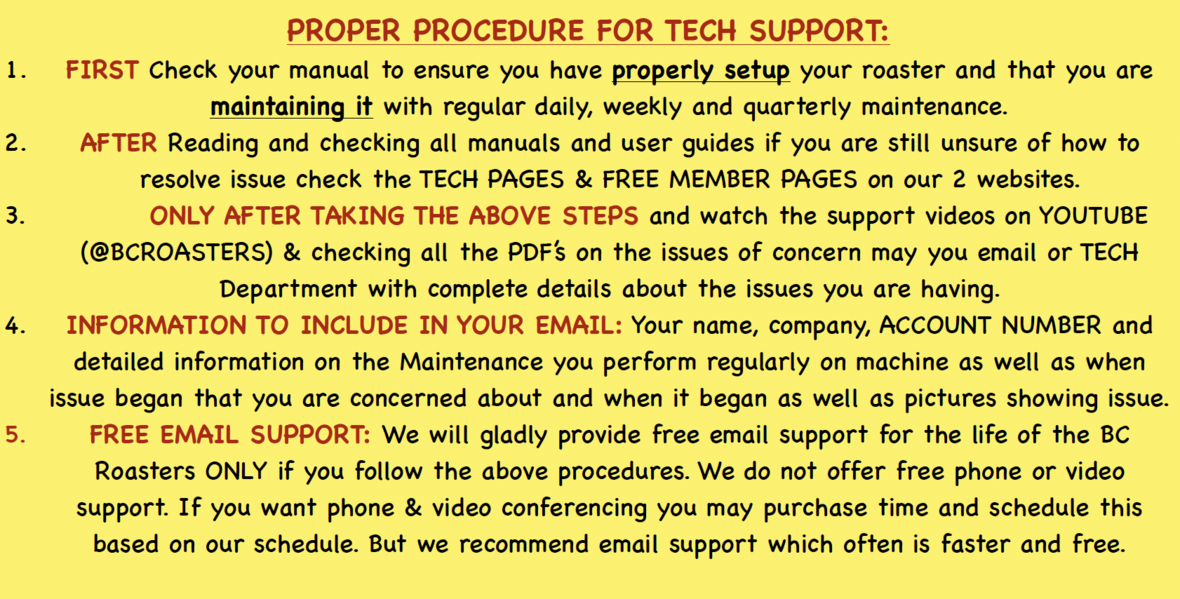 TECH & PARTS SUPPORT FOR BC CLIENTS